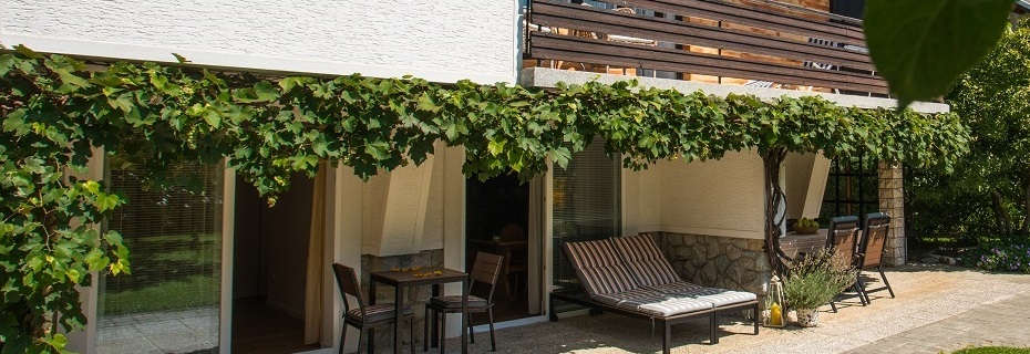 The Apartment and Studio apartment both have exits to the terrace and garden, where guests have option to use a deckchair free of charge. From the garden you can see Bled Castle and highest mountain in Slovenia, Mt. Triglav.